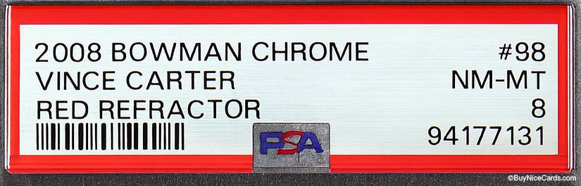2008 Vince Carter Bowman Chrome Chrome Red Refractor /5 # 98 PSA 8 NM-MT
