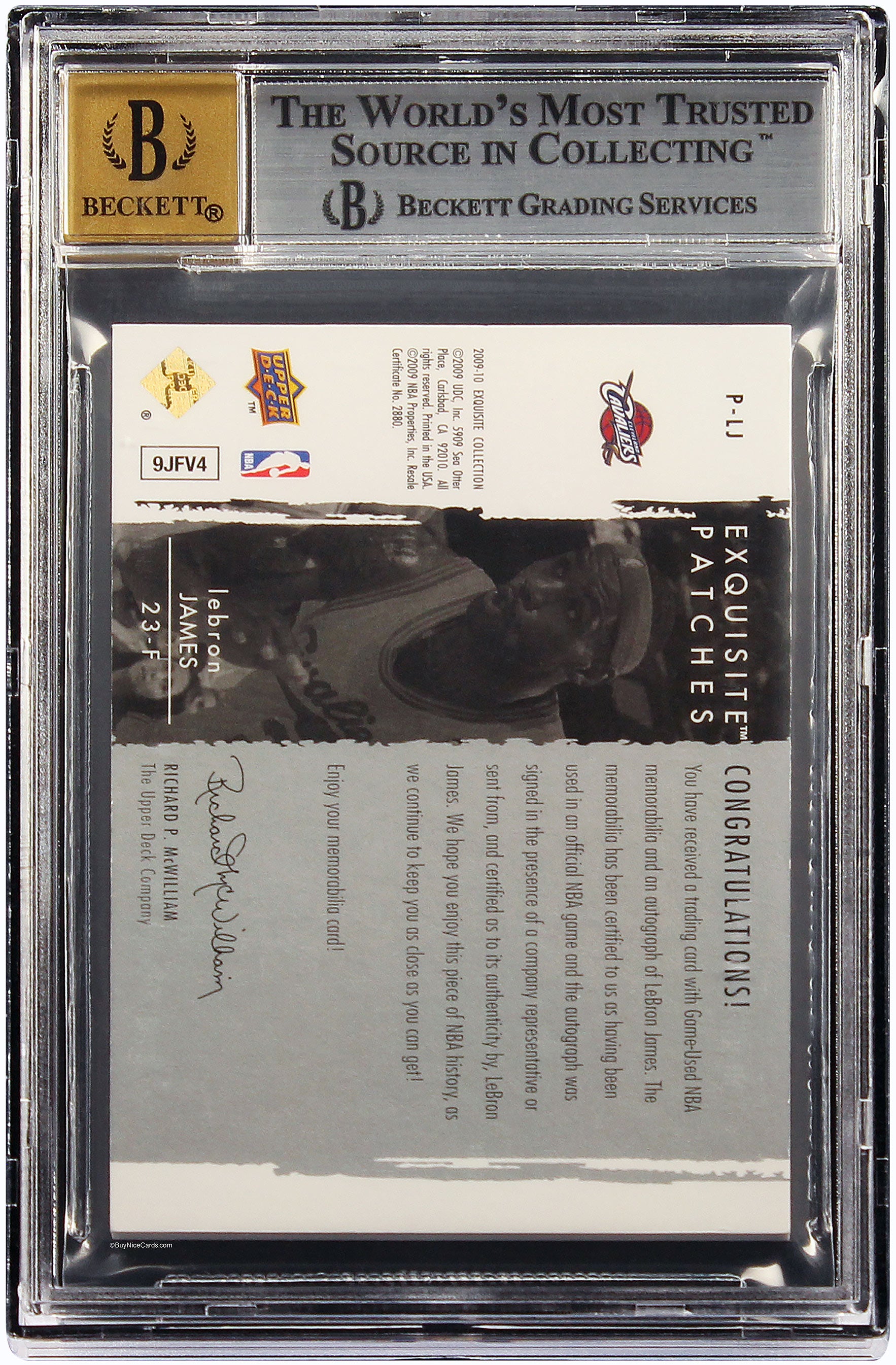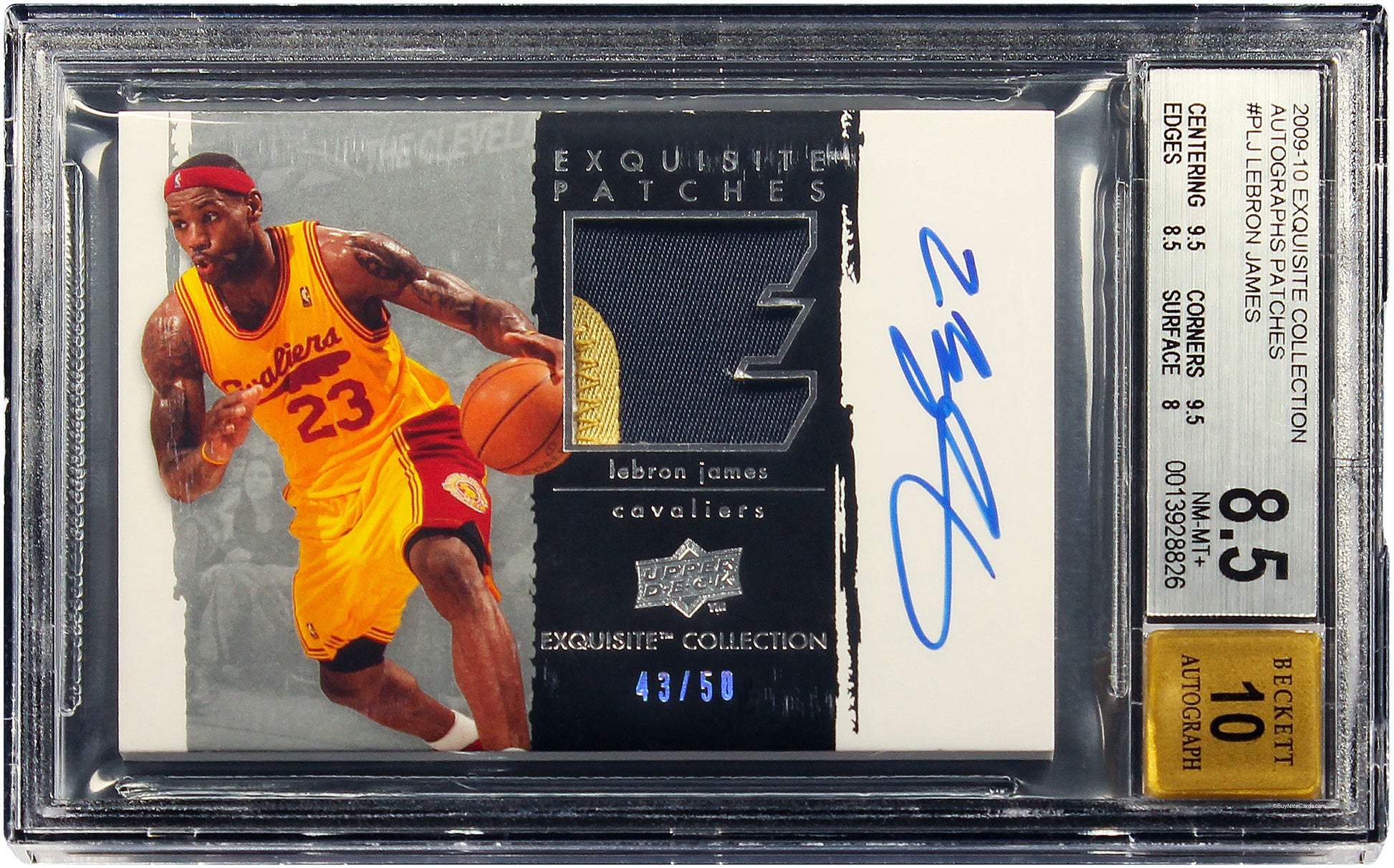 2009 LeBron James Upper Deck Exquisite Patch Auto /50 # PLJ BGS 8.5