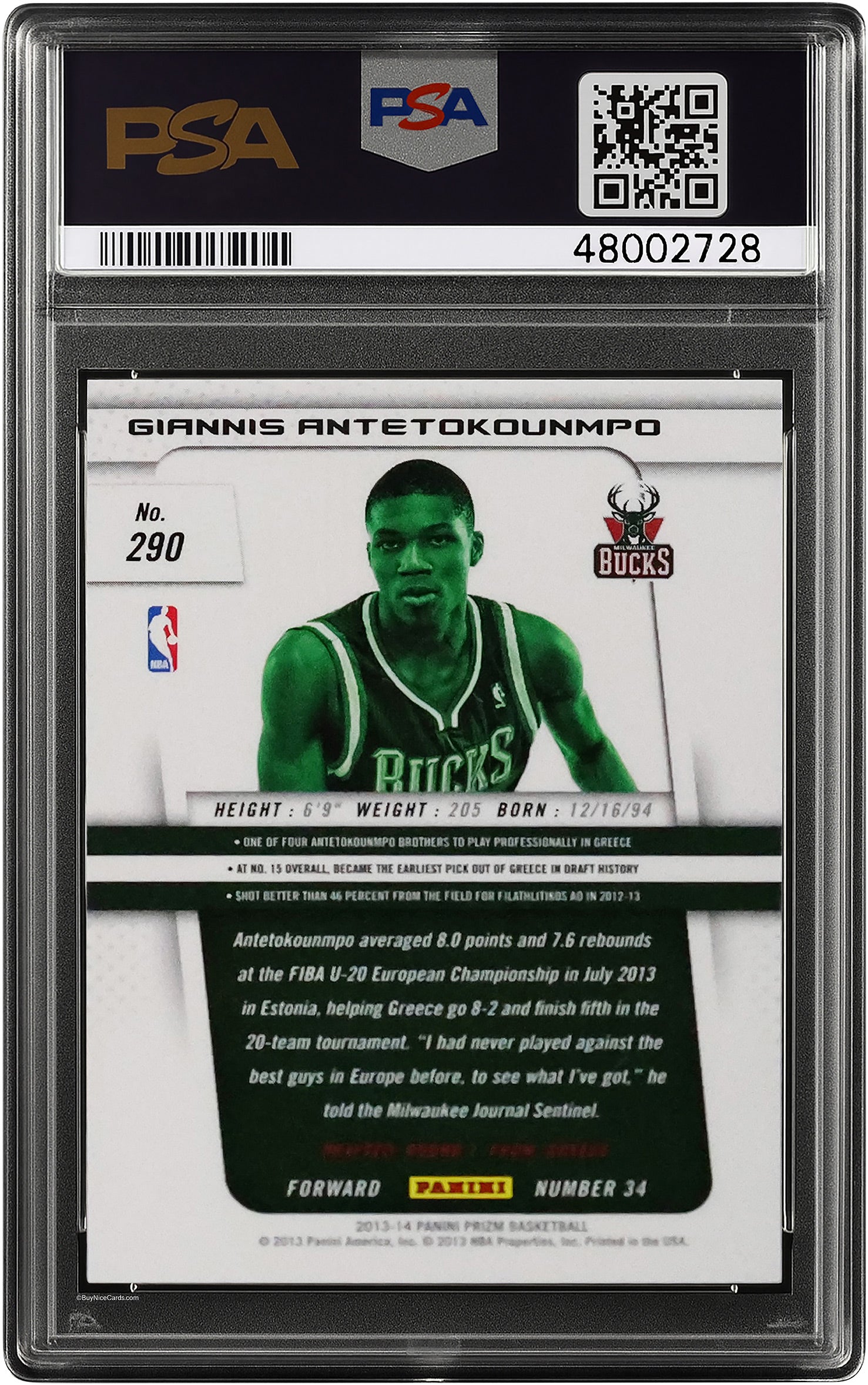2013 Giannis Antetokounmpo Panini Prizm Base RC Rookie #290 PSA 10 Gem Mint