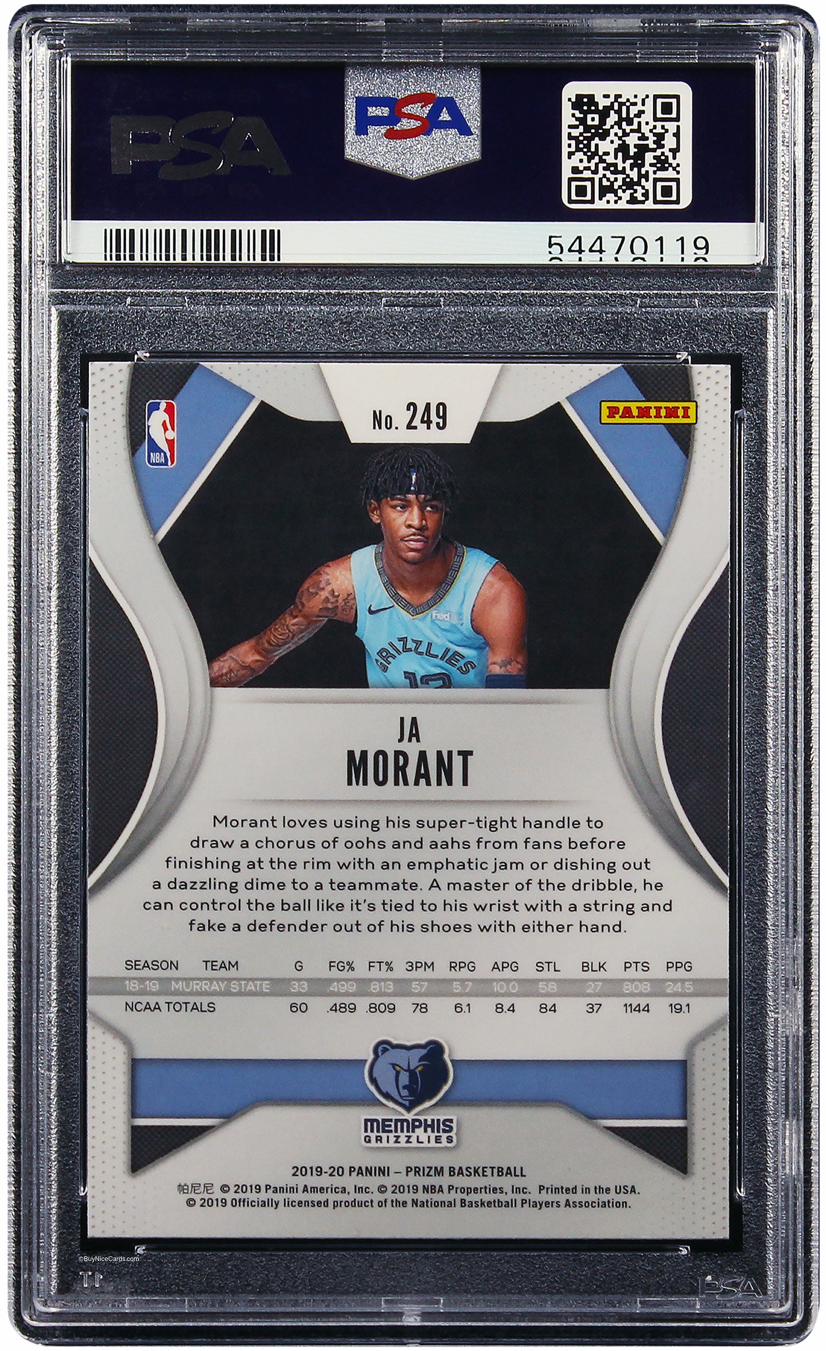 2019 Ja Morant Panini Prizm Base RC Rookie #249 PSA 10 Gem Mint